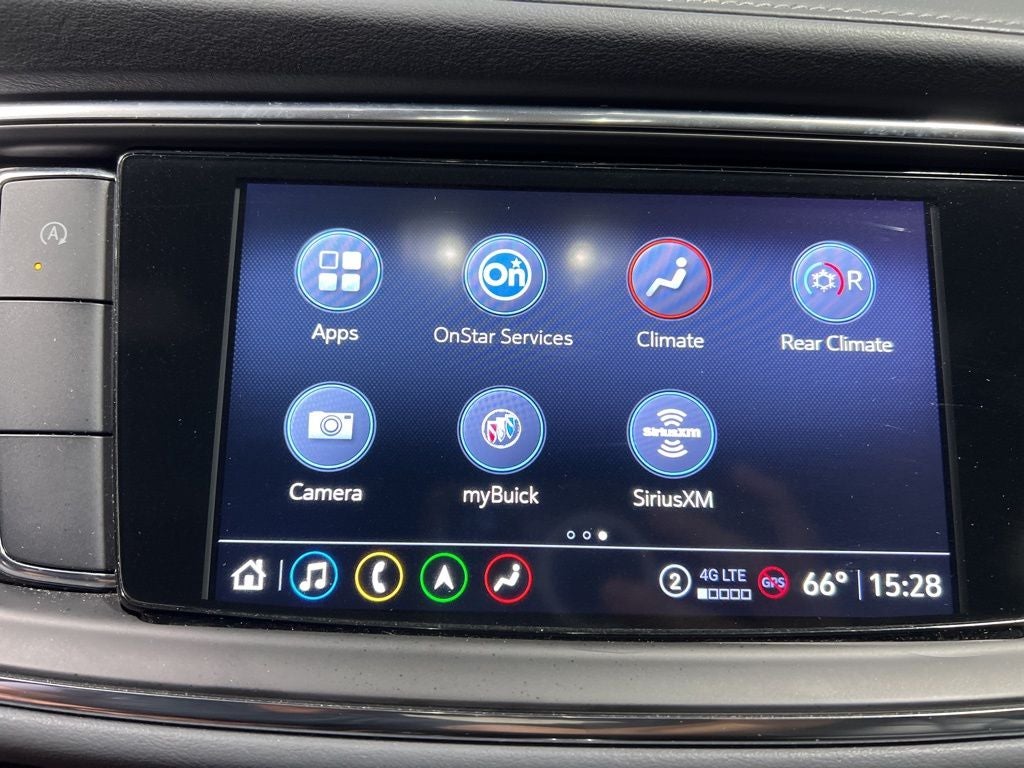Preferred Equipment Group 1SN (Vehicle Health Management), FWD, 10 Speakers, 18 Aluminum Wheels, 3.49 Final Drive Axle Ratio, 3rd row seats: split-bench, 4-Wheel Disc Brakes, 6-Way Power Front Passenger Seat Adjuster, 7-Passenger Seating, 8-Way Power Driver Seat Adjuster, ABS brakes, Air Conditioning, Alloy wheels, AM/FM radio: SiriusXM with 360L, Auto High-beam Headlights, Auto-dimming door mirrors, Auto-dimming Rear-View mirror, Automatic temperature control, Bose Performance-Enhanced 10-Speaker System, Brake assist, Bumpers: body-color, Compass, Delay-off headlights, Driver 4-Way Power Lumbar Seat Adjuster, Driver door bin, Driver vanity mirror, Dual front impact airbags, Dual front side impact airbags, Electronic Stability Control, Emergency communication system: OnStar and Buick connected services capable, Exterior Parking Camera Rear, Four wheel independent suspension, Front anti-roll bar, Front Bucket Seats, Front Center Armrest, Front dual zone A/C, Front Passenger 4-Way Power Lumbar Seat Adjuster, Front reading lights, Fully automatic headlights, Garage door transmitter, Heads-Up Display, Heated door mirrors, Heated Driver & Front Passenger Seats, Heated front seats, Heated rear seats, Heated steering wheel, Illuminated entry, Leather steering wheel, Low tire pressure warning, Memory seat, Navigation System, Occupant sensing airbag, Outside temperature display, Overhead airbag, Overhead console, Panic alarm, Passenger door bin, Passenger vanity mirror, Perforated Leather-Appointed Seat Trim, Power door mirrors, Power driver seat, Power Liftgate, Power passenger seat, Power steering, Power windows, Premium audio system: Buick Infotainment System, Radio data system, Radio: Buick Infotainment Sys AM/FM Stereo w/Nav, Rear air conditioning, Rear anti-roll bar, Rear reading lights, Rear window defroster, Rear window wiper, Remote keyless entry, Roof rack: rails only, Security system, SiriusXM w/360L, Speed control, Speed-sensing steering, Spoiler, Steering wheel memory, Steering wheel mounted audio controls, Tachometer, Telescoping steering wheel, Tilt steering wheel, Traction control, Trip computer, Turn signal indicator mirrors, Variably intermittent wipers, Ventilated Driver & Front Passenger Seats, Ventilated front seats, Voltmeter, and Wireless Apple CarPlay/Wireless Android Auto.