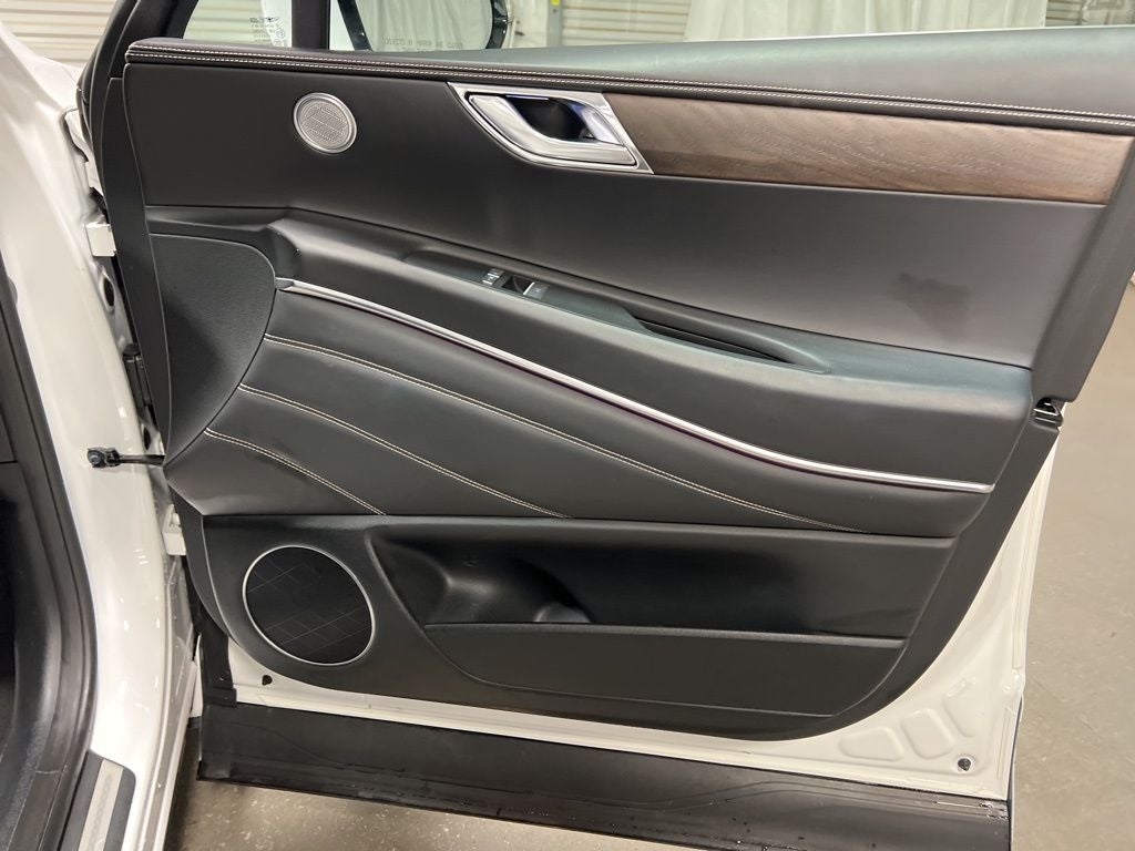 12 Speakers, 4-Wheel Disc Brakes, 4.363 Axle Ratio, ABS brakes, Air Conditioning, Alloy wheels, AM/FM radio: SiriusXM, Android Auto & Apple CarPlay, Anti-whiplash front head restraints, Auto High-beam Headlights, Auto tilt-away steering wheel, Auto-dimming door mirrors, Auto-dimming Rear-View mirror, Auto-leveling suspension, Automatic temperature control, Brake assist, Bumpers: body-color, Compass, Delay-off headlights, Driver door bin, Driver vanity mirror, Dual front impact airbags, Dual front side impact airbags, Electronic Stability Control, Emergency communication system: Genesis Connected Services, Exterior Parking Camera Rear, Four wheel independent suspension, Front anti-roll bar, Front Bucket Seats, Front Center Armrest, Front dual zone A/C, Front reading lights, Fully automatic headlights, Garage door transmitter: HomeLink, Genuine wood console insert, Genuine wood dashboard insert, Genuine wood door panel insert, Heated door mirrors, Heated Front Bucket Seats, Heated front seats, Heated steering wheel, Illuminated entry, Knee airbag, Leather steering wheel, Leatherette Seating Surfaces, Low tire pressure warning, Memory seat, Navigation System, Occupant sensing airbag, Outside temperature display, Overhead airbag, Overhead console, Panic alarm, Passenger door bin, Passenger vanity mirror, Power door mirrors, Power driver seat, Power Liftgate, Power passenger seat, Power steering, Power windows, Radio data system, Radio:14.5 Navigation System w/AM/FM/HD Radio, Rain sensing wipers, Rear air conditioning, Rear anti-roll bar, Rear reading lights, Rear seat center armrest, Rear side impact airbag, Rear window defroster, Rear window wiper, Remote keyless entry, Security system, Speed control, Speed-sensing steering, Speed-Sensitive Wipers, Split folding rear seat, Spoiler, Steering wheel memory, Steering wheel mounted audio controls, Tachometer, Telescoping steering wheel, Tilt steering wheel, Traction control, Trip computer, Turn signal indicator mirrors, Variably intermittent wipers, and Wheels: 19 x 8.5J Medium Metallic Gray Alloy.