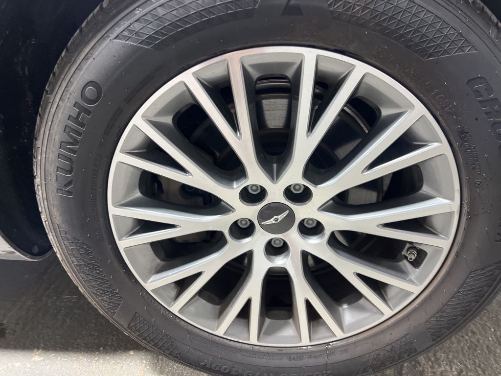 12 Speakers, 4-Wheel Disc Brakes, 4.363 Axle Ratio, ABS brakes, Air Conditioning, Alloy wheels, AM/FM radio: SiriusXM, Android Auto & Apple CarPlay, Anti-whiplash front head restraints, Auto High-beam Headlights, Auto tilt-away steering wheel, Auto-dimming door mirrors, Auto-dimming Rear-View mirror, Auto-leveling suspension, Automatic temperature control, Brake assist, Bumpers: body-color, Compass, Delay-off headlights, Driver door bin, Driver vanity mirror, Dual front impact airbags, Dual front side impact airbags, Electronic Stability Control, Emergency communication system: Genesis Connected Services, Exterior Parking Camera Rear, Four wheel independent suspension, Front anti-roll bar, Front Bucket Seats, Front Center Armrest, Front dual zone A/C, Front reading lights, Fully automatic headlights, Garage door transmitter: HomeLink, Genuine wood console insert, Genuine wood dashboard insert, Genuine wood door panel insert, Heated door mirrors, Heated Front Bucket Seats, Heated front seats, Heated steering wheel, Illuminated entry, Knee airbag, Leather steering wheel, Leatherette Seating Surfaces, Low tire pressure warning, Memory seat, Navigation System, Occupant sensing airbag, Outside temperature display, Overhead airbag, Overhead console, Panic alarm, Passenger door bin, Passenger vanity mirror, Power door mirrors, Power driver seat, Power Liftgate, Power passenger seat, Power steering, Power windows, Radio data system, Radio:14.5 Navigation System w/AM/FM/HD Radio, Rain sensing wipers, Rear air conditioning, Rear anti-roll bar, Rear reading lights, Rear seat center armrest, Rear side impact airbag, Rear window defroster, Rear window wiper, Remote keyless entry, Security system, Speed control, Speed-sensing steering, Speed-Sensitive Wipers, Split folding rear seat, Spoiler, Steering wheel memory, Steering wheel mounted audio controls, Tachometer, Telescoping steering wheel, Tilt steering wheel, Traction control, Trip computer, Turn signal indicator mirrors, Variably intermittent wipers, and Wheels: 19 x 8.5J Medium Metallic Gray Alloy.