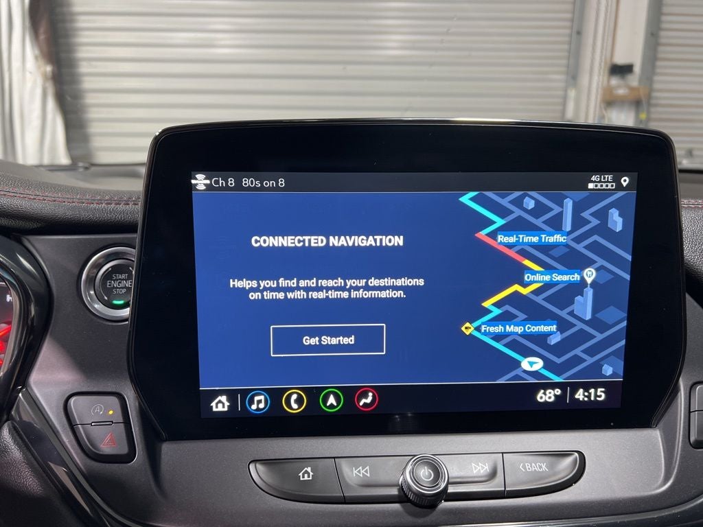 Preferred Equipment Group 1RS, 3.49 Final Drive Axle Ratio, 4-Wheel Disc Brakes, 6-Way Power Front Passenger Seat Adjuster, 8 Speakers, 8-Way Power Driver Seat Adjuster, ABS brakes, Air Conditioning, Alloy wheels, AM/FM radio: SiriusXM with 360L, Apple CarPlay/Android Auto, Auto High-beam Headlights, Auto-dimming door mirrors, Auto-dimming Rear-View mirror, Automatic temperature control, Bose Premium 8-Speaker Audio System Feature, Brake assist, Bumpers: body-color, Child-Seat-Sensing Airbag, Compass, Delay-off headlights, Driver door bin, Driver vanity mirror, Dual front impact airbags, Dual front side impact airbags, Electronic Stability Control, Emergency communication system: OnStar and Chevrolet connected services capable, Four wheel independent suspension, Front anti-roll bar, Front Bucket Seats, Front Center Armrest, Front dual zone A/C, Front reading lights, Fully automatic headlights, Garage door transmitter, Heated door mirrors, Heated Driver and Front Passenger Seats, Heated front seats, Heated steering wheel, Illuminated entry, Knee airbag, Leather Shift Knob, Leather steering wheel, Low tire pressure warning, Navigation System, Occupant sensing airbag, Outside temperature display, Overhead airbag, Overhead console, Panic alarm, Passenger door bin, Passenger vanity mirror, Perforated Leather-Appointed Seat Trim, Power door mirrors, Power Driver Lumbar Control, Power driver seat, Power Liftgate, Power passenger seat, Power steering, Power windows, Premium audio system: Chevrolet Infotainment 3 Premium, Radio data system, Radio: Chevrolet Infotainment 3 Premium System, Rear anti-roll bar, Rear reading lights, Rear seat center armrest, Rear window defroster, Rear window wiper, Remote keyless entry, Ride and Handling Suspension, Security system, SiriusXM with 360L, Speed control, Speed-sensing steering, Split folding rear seat, Spoiler, Steering wheel mounted audio controls, Stop-Start Engine Control System, Tachometer, Telescoping steering wheel, Tilt steering wheel, Traction control, Trip computer, Turn signal indicator mirrors, Variably intermittent wipers, Voltmeter, and Wheels: : 20 Technical Gray Aluminum.